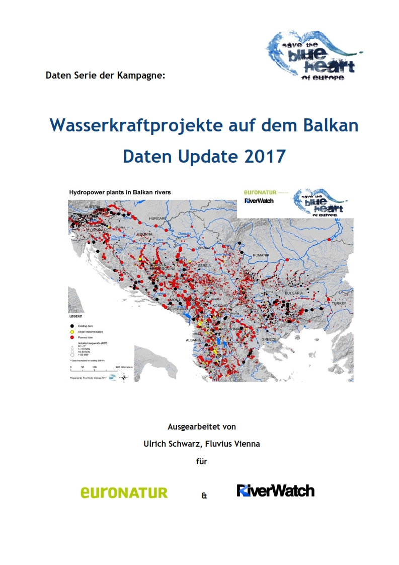 In einer Folgestudie der ursprünglichen Studie "Gewässermorphologie und Staudammplanungen" von 2012 (U. Schwarz) wurden nun auch Kleinwasserkraftwerke berücksichtigt. In der Studie von 2012 wurden ursprünglich nur Wasserkraftwerke über 1 MW dokumentiert. In diesem Update wurden nun insgesamt 2.683 geplante Wasserkraftprojekte auf der Balkanhalbinsel registriert. Zusätzlich konnten 714 bereits bestehende Kraftwerke in der Region verzeichnet werden. Die 2.683 geplanten Projekte sind basierend auf den vier Größenkategorien wie folgt verteilt: 68 sehr große Projekte (> 50 MW), 178 große Projekte (10-50 MW), 867 mittlere Projekte (1-<10 MW) and 1,570 Kleinprojekte (0.1-< 1 MW).