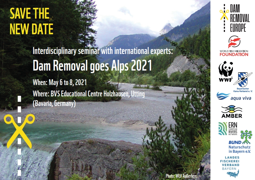 Registration for the "Dam Removal goes Alps" seminar from May 6-8, 2021 in the BVS training centre in Holzhausen am Ammersee will open in late 2020. Find more info about the program and field trips on the event website.