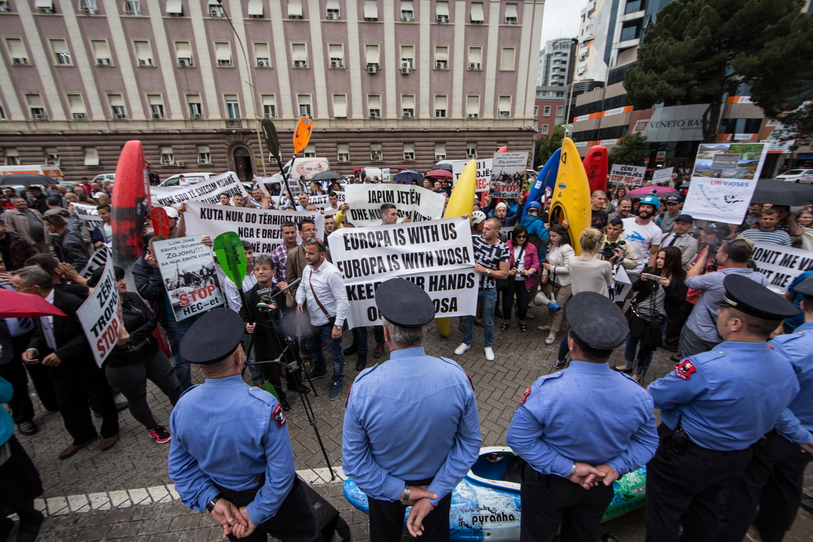Vienna, Radolfzell, Ljubljana, May 31, 2016. 23 rivers in six countries, 390 river kilometers: on Friday, May 14, a very unique activity ended in the Albanian capital of Tirana – the Balkan Rivers Tour. Over 35 days, kayakers from all over Europe paddled the most beautiful and most threatened rivers in the Balkans in order to draw attention to the looming dam tsunami on the peninsula. A total of over 500 paddlers from 18 nations participated in the activity. Headed by Rok Rozman, former Slovenian Olympic athlete and initiator of the tour, they covered almost 400 kilometers of waterway. Another 1550 non-kayakers participated in the special events of the tour.